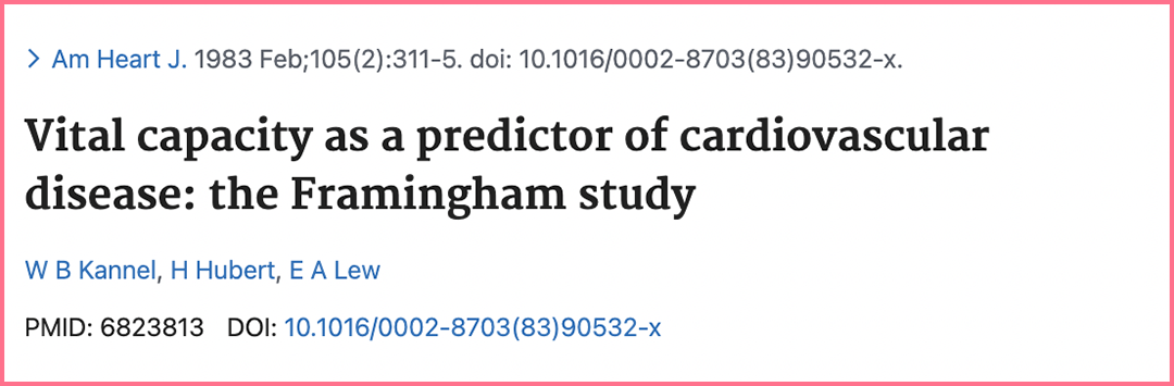 发表在American Heart Journal的流行病学研究对28584名没有心脏疾病的中年参与者进行了肺功能的测试,并且跟踪了他们未来40年的健康状况。研究结果发现,肺功能明显下降的中年人,后续发生心源性猝死或非致命性冠心病事件的风险更高。一秒内吹出的空气量,每降低一个标准差,心源性猝死风险可增加23%,非致命性冠心病事件风险增加8%。