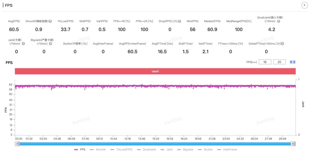 接下来我们进行游戏实测,看看iQOO Neo9S Pro+在重负载场景下的游戏表现。26℃室温下,开启Monster模式,《原神》跑图30分钟左右,平均帧率为60.5帧,帧率全程都能稳定在60帧左右,初步游戏测试符合预期。