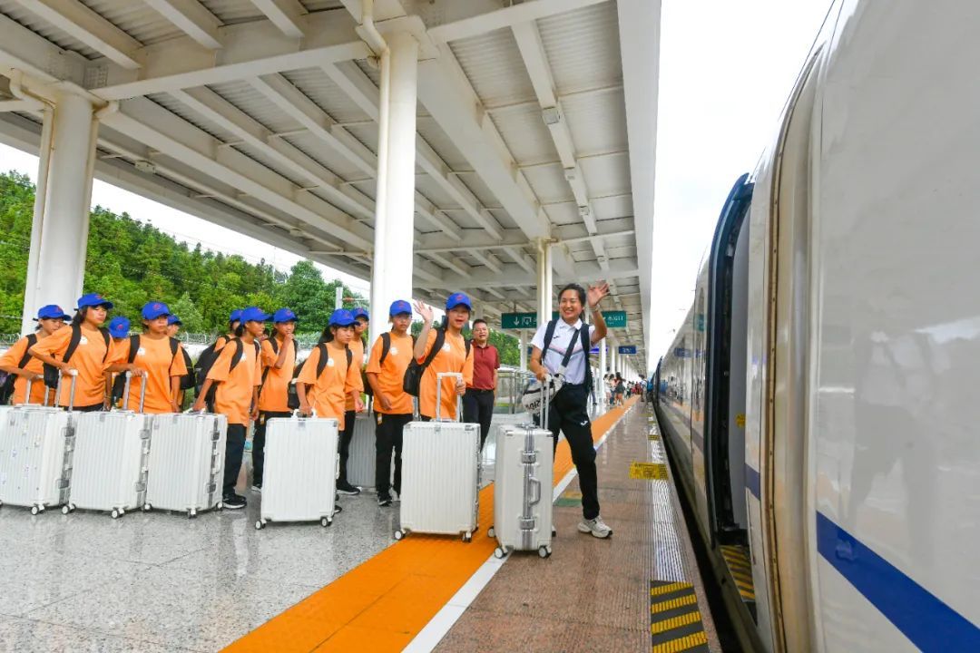 八时许,高速列车在站台前平稳停靠,这群英姿飒爽的定南足球小将们,带着党和政府的关怀、亲朋好友的祝福、定南乃至国家的足球希望,有序地登上列车、踏上征途,到国际赛场上为荣誉而战、为国家争光。