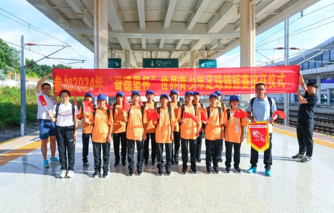 7月12日早上,定南在高铁定南南站举行出征仪式,欢送12名定南一小女足队员代表中国U12女足参加2024年“哥德堡杯”世界青少年足球锦标赛。
