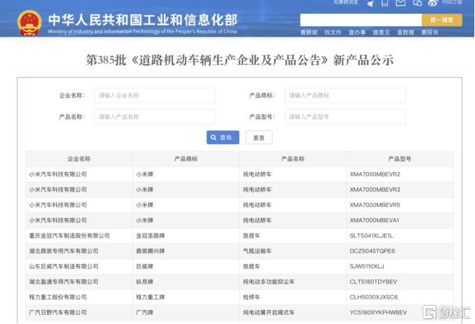 据工信部官网披露的第385批《道路机动车辆生产企业及产品公告》新产品公示,赫然出现四款“小米牌”纯电动轿车,值得注意的是,其企业名称为“小米汽车科技有限公司”。这意味着,小米汽车取得独立造车资质,其生产企业名称也由北汽更换为小米。