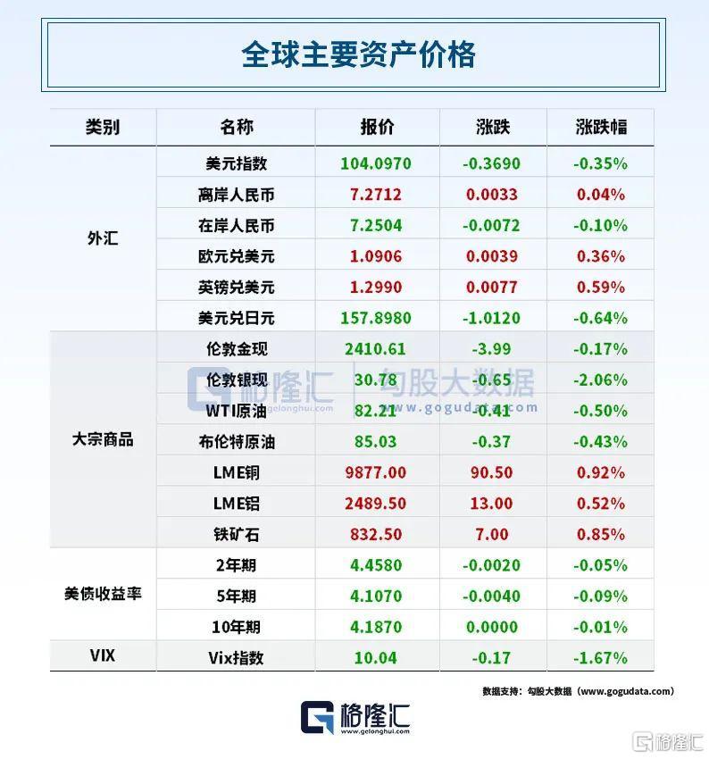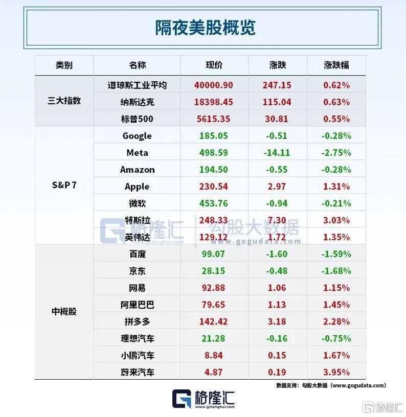 大型科技股涨跌不一,苹果涨1.31%,市值重回3.5万亿美元上方;微软跌0.21%,英伟达涨1.35%,亚马逊跌0.28%,Meta跌2.75%。热门中概股涨跌不一,纳斯达克中国金龙指数涨0.60%,本周累涨4.15%。蔚来涨近4%,拼多多涨超2%,小鹏汽车、阿里巴巴、网易涨超1%;哔哩哔哩跌超5%,爱奇艺、百度、京东、微博跌超1%。