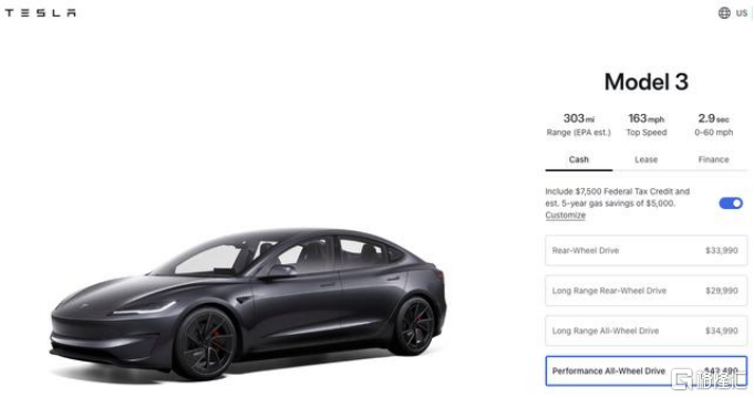 据特斯拉官网,特斯拉推出了新款后轮驱动版本的Model 3长里程电动车,售价为42490美元,相较于四轮驱动版本便宜5000美元。报道称,特斯拉并未调整Model 3基本款、长里程四轮驱动版本及性能版本的售价。