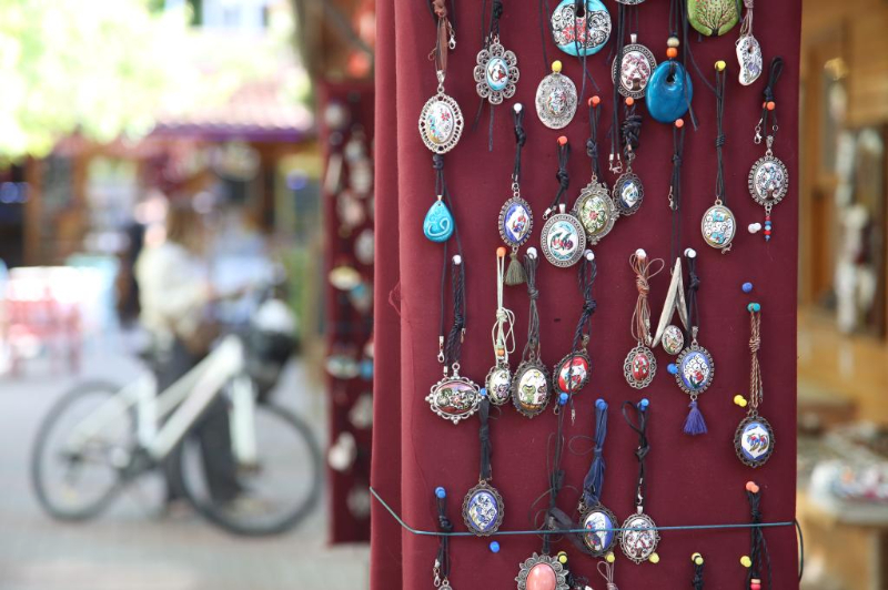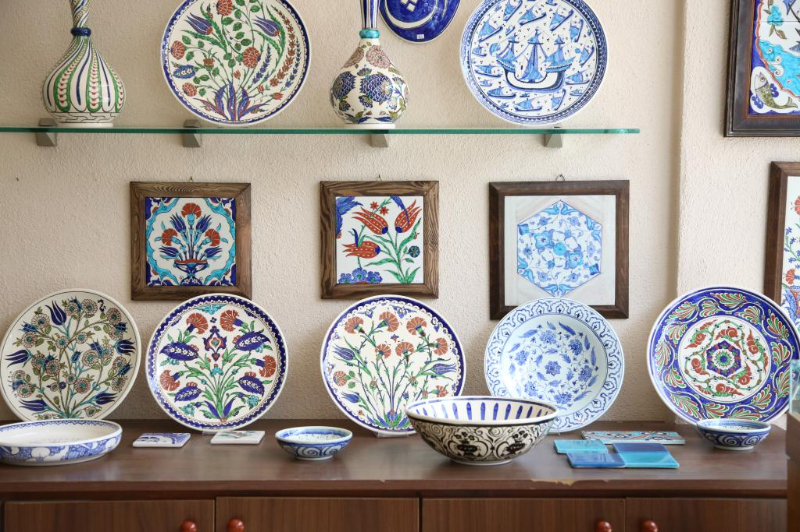 随着伊兹尼克的陶瓷艺术再度焕发活力,这座“瓷都”正在逐步找回昔日辉煌。从市中心的钟楼到各家各户的门牌,随处可见陶瓷元素;街旁小店甚至酒店、餐厅大堂,陶瓷制成的花瓶、盘子、瓷砖、首饰、冰箱贴琳琅满目……“在土耳其提到伊兹尼克,所有人的第一印象就是陶瓷,这是我们的城市符号。”一名市民对记者说。