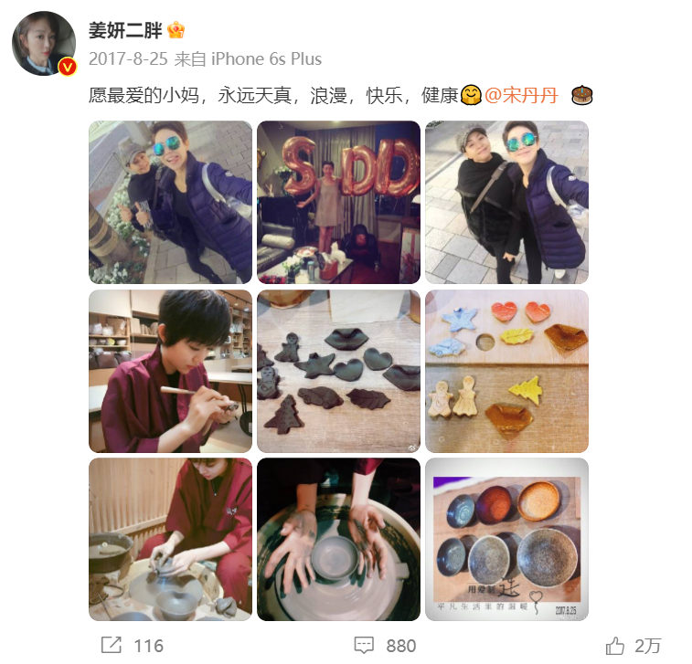 姜妍自己倒是很喜欢这个名字,直到现在微博还带着“二胖”的后缀。