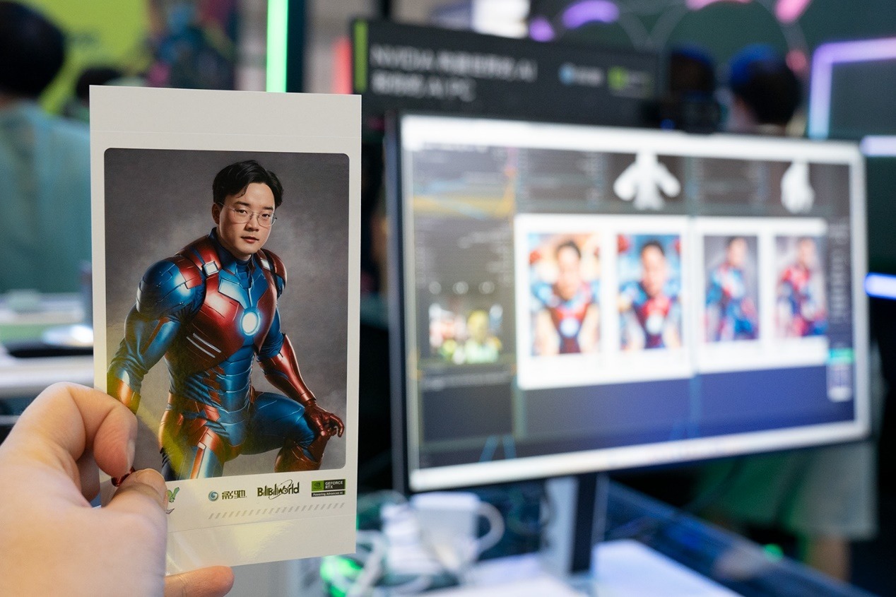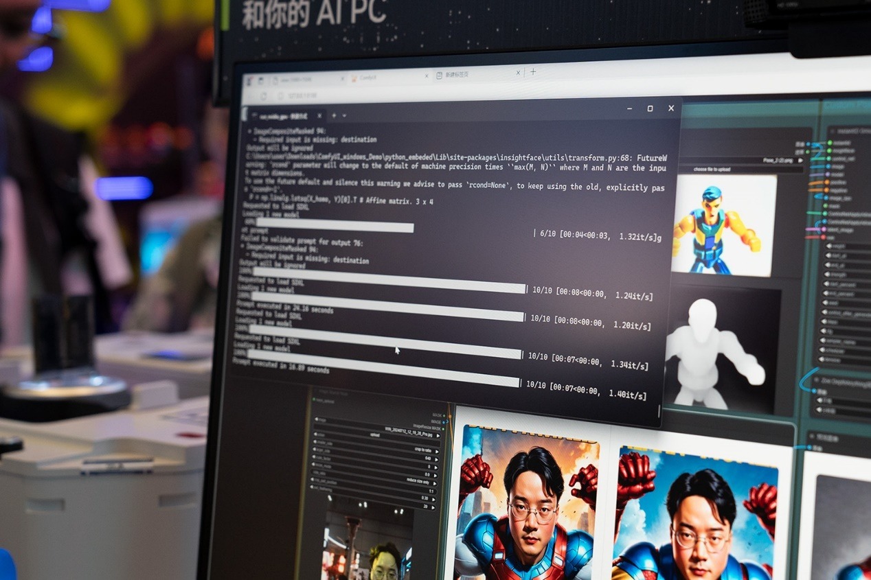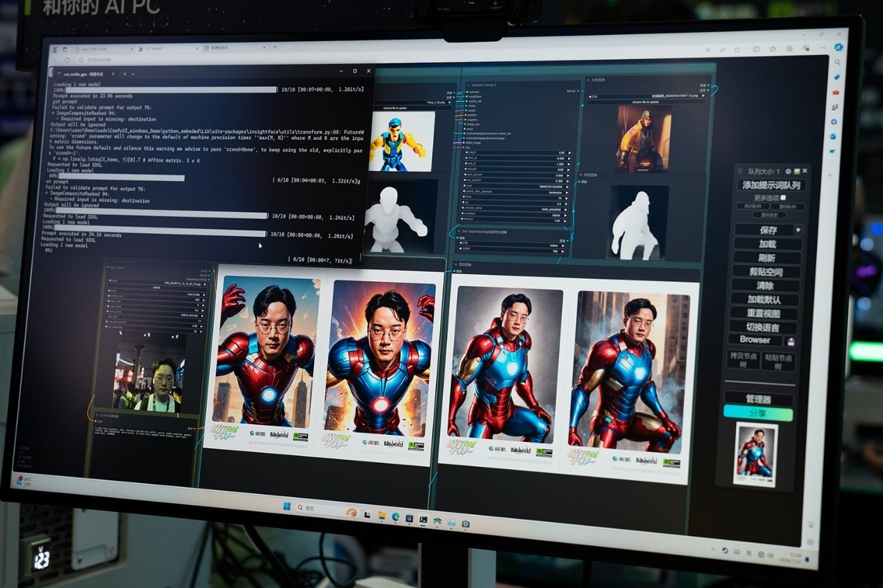 这是现场利用相机拍照结合Comfy UI的Demo将自己与动漫人物相结合的效果。AI技术正以其惊人的速度和力量,不断刷新我们对效率和创新的认知。它不仅极大地提高了我们的工作效率,更在悄然间改变着我们的日常生活方式。如果你也想亲身体验这一前沿科技的魔力,那么来影驰展台,直击 AI 技术的最新前沿,领略 RTX AI PC 的强大算力。