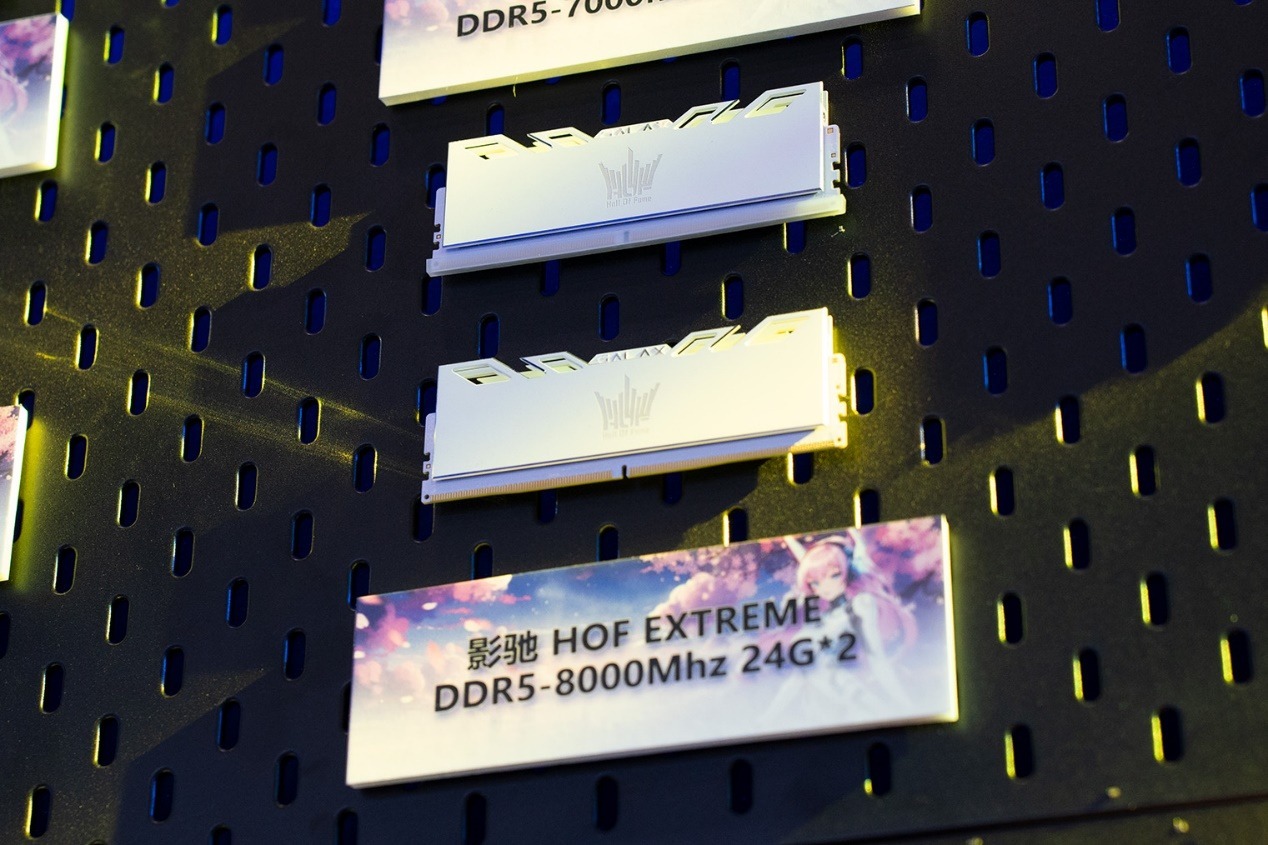 硬件墙上少不了的还有影驰的内存产品系列,特别是展出的影驰HOF PRO以及HOF CLASSIC系列DDR5内存,超8000MHz的频率感受内存性能的极限。