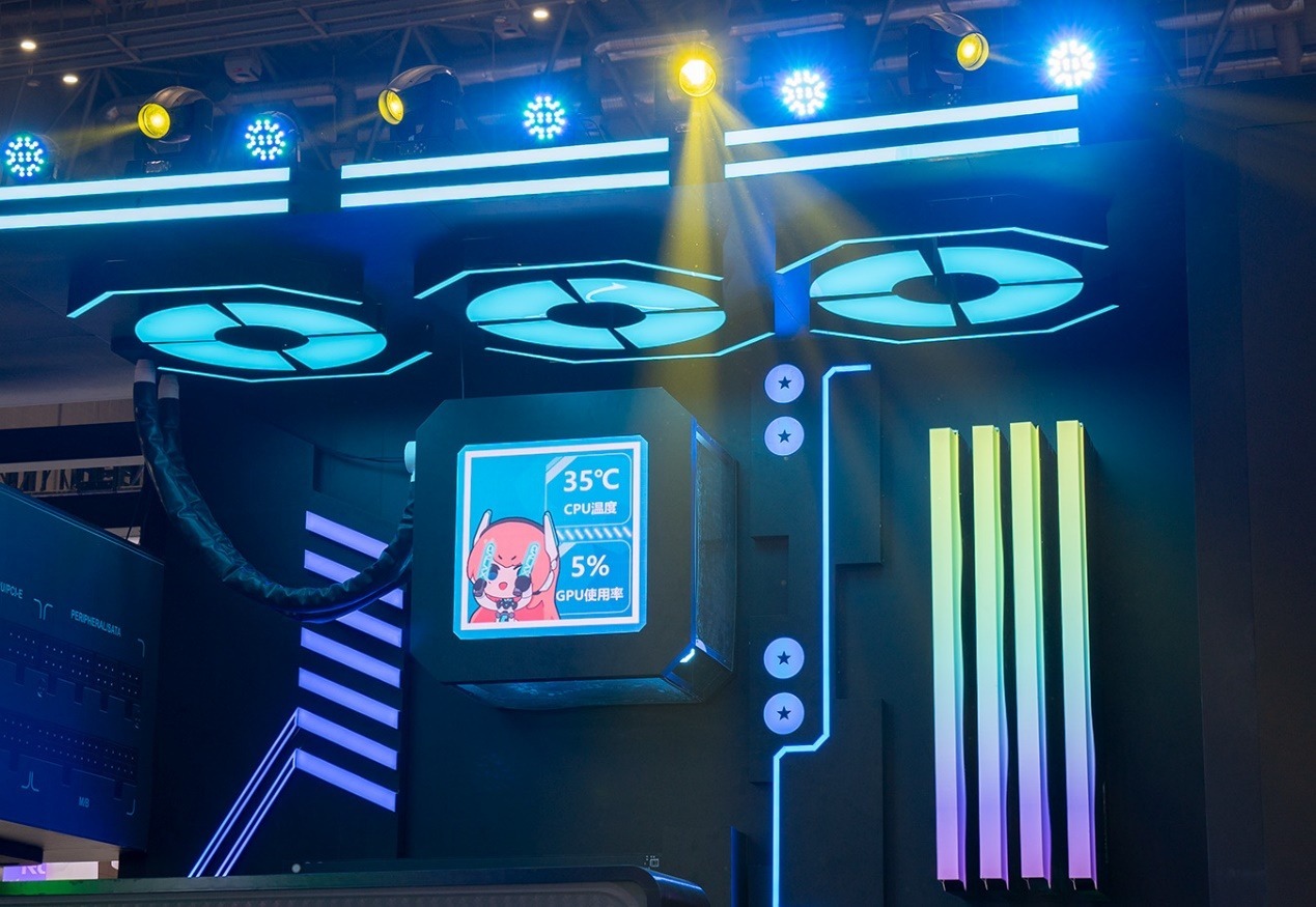 有一说一,影驰的展台真的活力满满,创意十足。它们将电脑硬件和整机元素融入到展台之中,让每一位玩家在会场的每个角落都能看到电脑硬件的配置细节和隐藏的惊喜。
