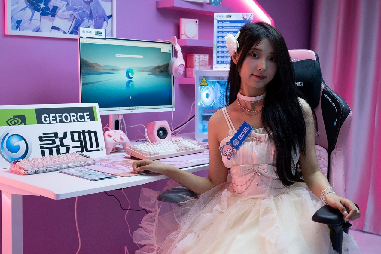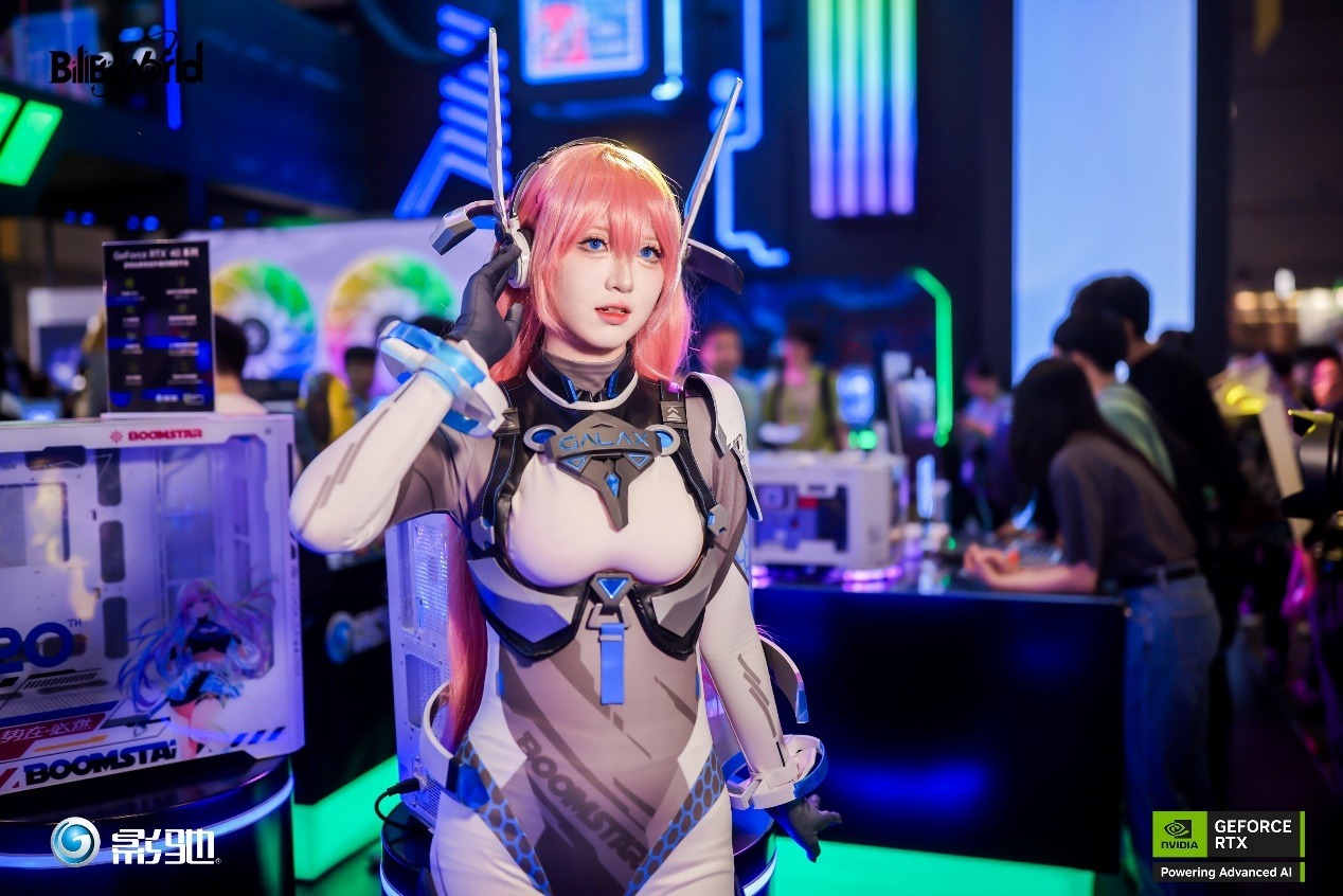 当然,欣赏完硬件盛宴,BW少不了的还有小姐姐与showgirl,多名UP主与真人星曜娘在线热舞,真的赚足了眼球!现场互动还有机会获得奖品,喜欢舞蹈和COSER的朋友们在BW期间不要忘了去影驰展台打卡集邮!