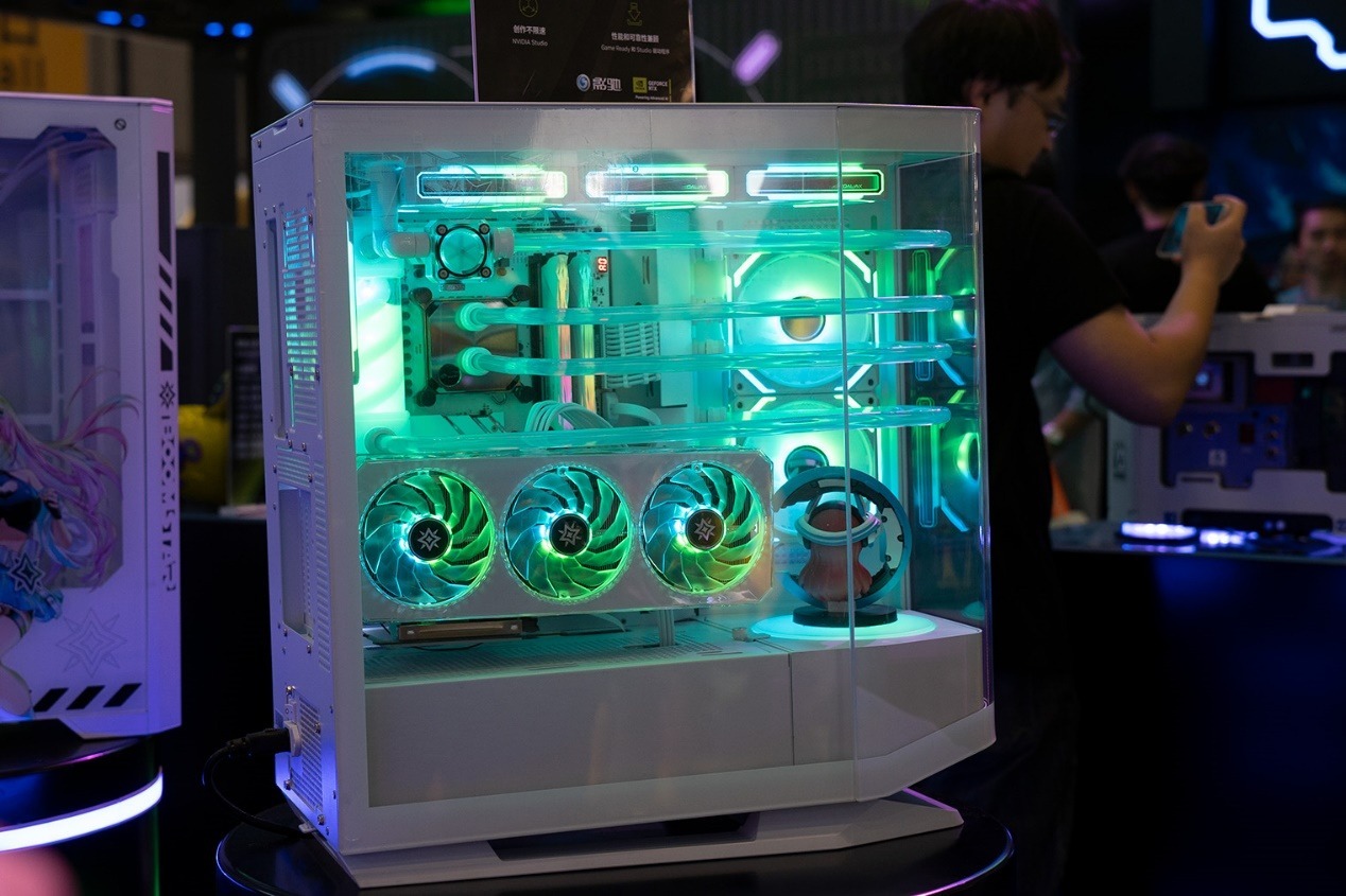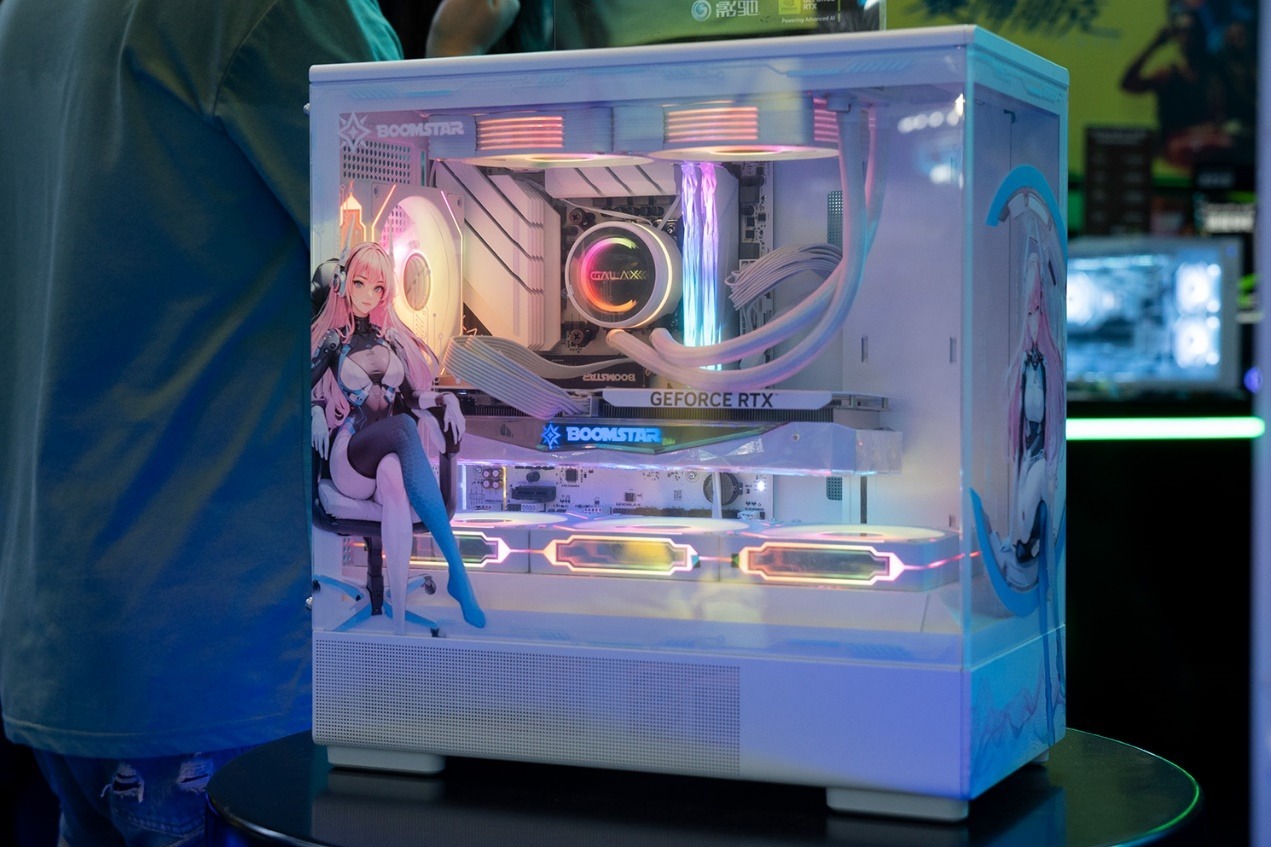 除此之外,现场还有星曜娘主题装机、分体水装机展示,每款都各具特色,吸引着众多DIY爱好者和游戏玩家驻足观赏。无论你是追求性能还是外观,都能在这里找到心仪的方案。