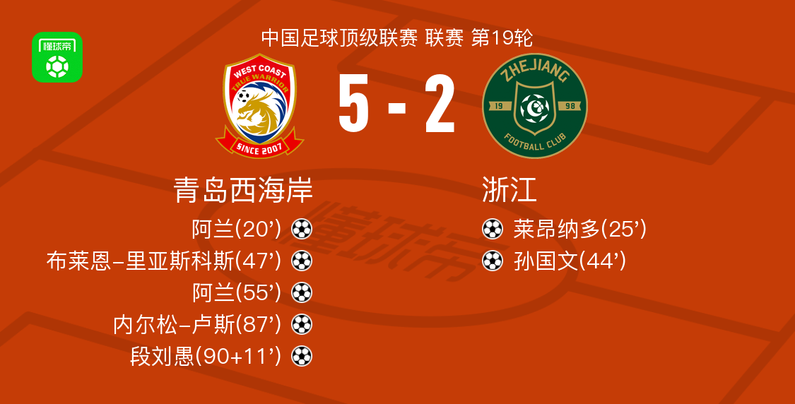 北京时间7月13日青岛西海岸vs浙江,两队赛后技术统计如下: