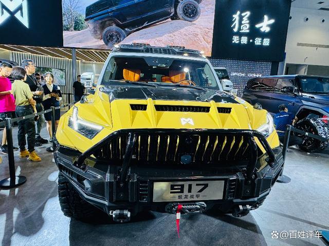 猛士基于用户个性化需求,以“一车一价格,一人一座驾”的定制改装服务,开启越野车“一车千面”新时代。猛士917品牌联名车型蛟龙战甲、高地雄狮现身长春汽博会。猛士 917 蛟龙战甲延续猛士“雄魂”设计理念,融合现代军武风格与中国龙元素,形成独特设计创意。其外观配色采用沙漠风暴黄涂装,搭配银顶撞色,硬核军事风格展露无遗。开上它无论户外越野还是城市代步出行都很吸睛。在材料选择上,猛士 917 蛟龙战甲车身多处使用到了,质量更轻、强度更高、价格更贵航空级锻造碳纤维材料。除此之外,新车配备碳纤维侧挂储物箱、C 窗扩展挂板、树枝分离器等,还有车顶拓展平台及相关灯具,设计个性与实用兼具。