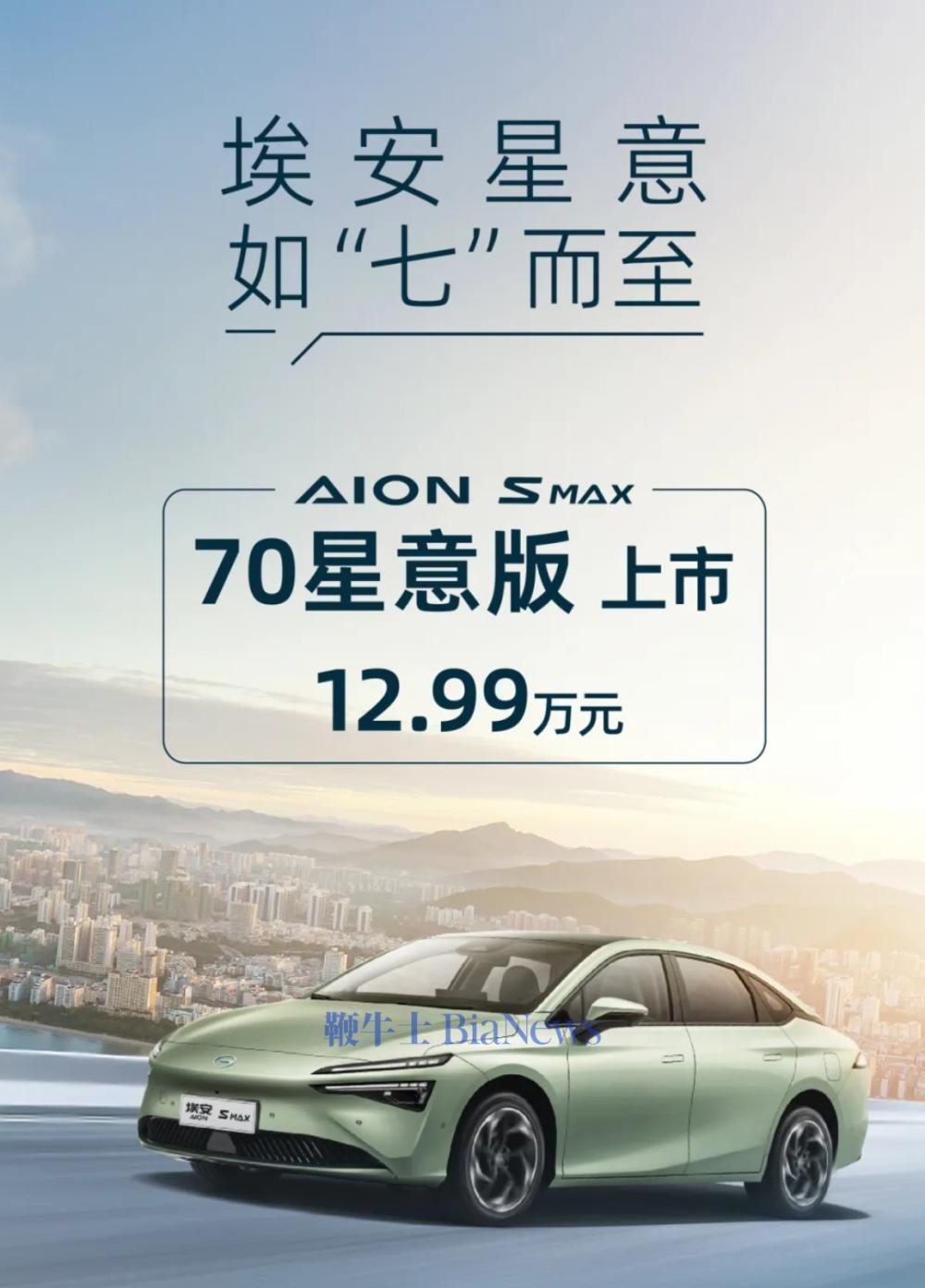 鞭牛士 7月15日消息,据埃安汽车官微消息,埃安S MAX 70星意版正式上市, 售12.99万。