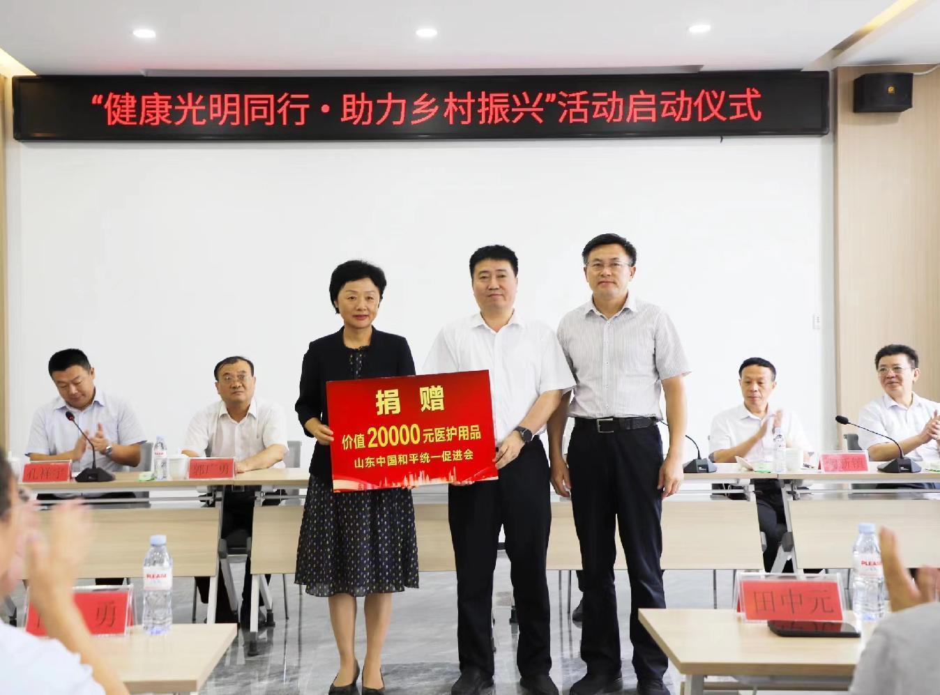 山东省委统战部副部长张静出席启动仪式,并代表山东中国和平统一促进会向省委统战部派驻临清市新华路街道办事处“第一书记”帮扶村捐赠价值2万元的医疗物资,山东中国和平统一促进会副会长、山东省立医院副院长王默在仪式上致辞,会议由临清市委副书记孔祥宇主持,聊城市委统战部和临清市有关领导同志出席现场活动。