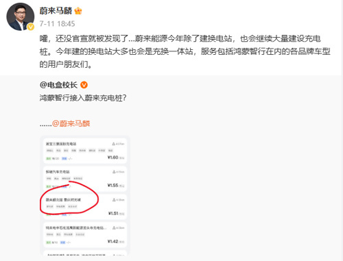 7月11日,蔚来品牌与传播助理副总裁马麟曾发文称:“蔚来能源今年除了建换电站,也会继续大量建设充电桩。今年建的换电站大多也会是充换一体站,服务包括鸿蒙智行在内的各品牌车型的用户朋友们。”