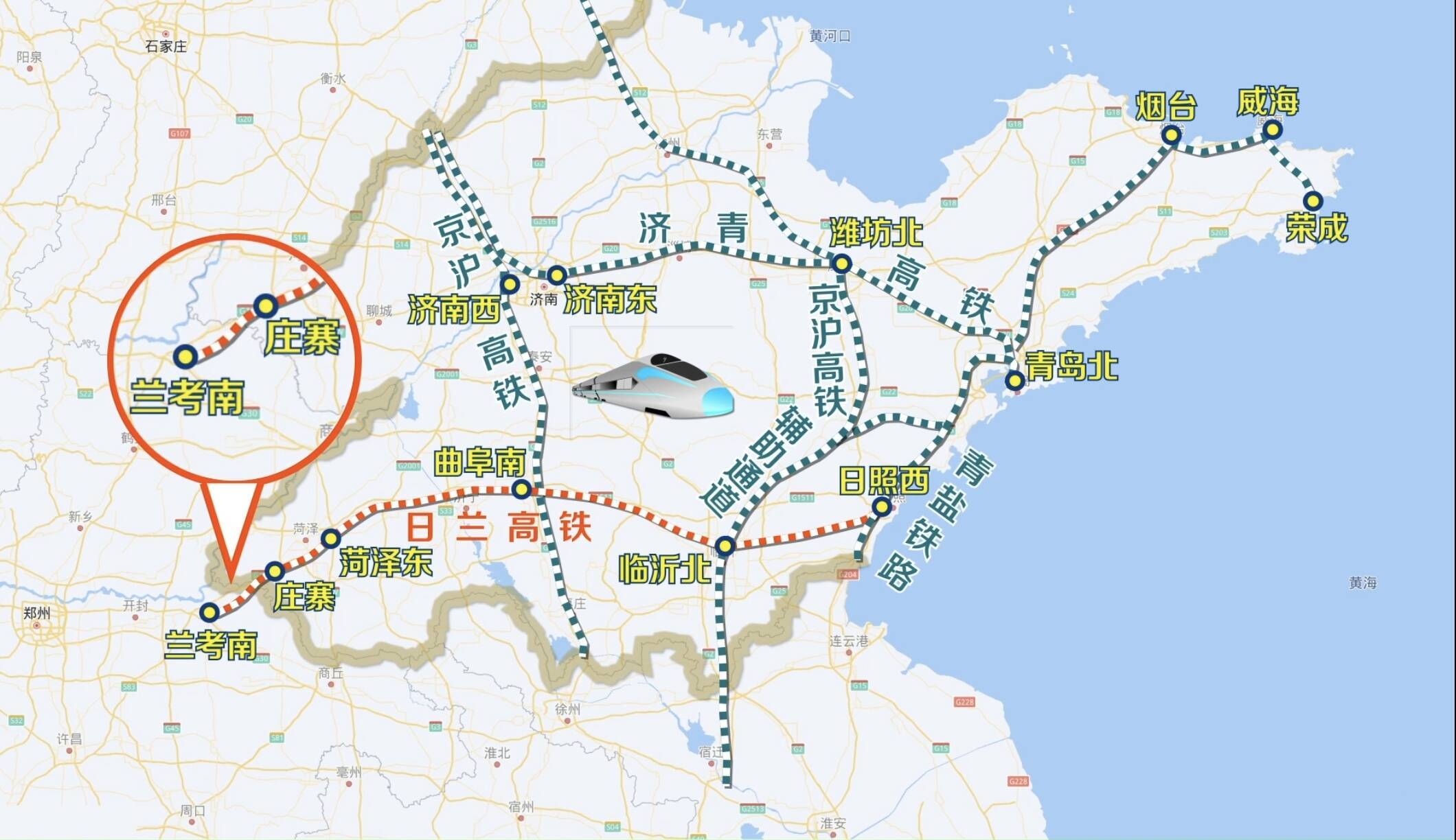 日兰高铁起自日照西站,途经山东省日照市、临沂市、济宁市、菏泽市,河南省商丘市、开封市,接入徐兰高铁兰考南站,线路全长472公里,设计时速350公里,其中日照至曲阜段、曲阜至庄寨段已分别于2019年11月26日、2021年12月26日开通运营。此次开通的日兰高铁庄兰段全长48公里,设庄寨站、兰考南站两座车站,均为既有车站。