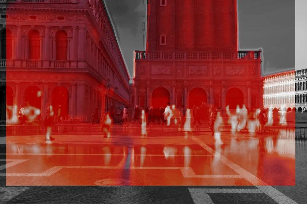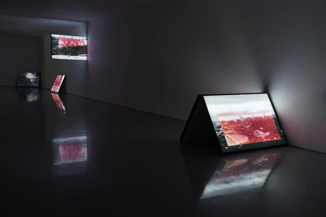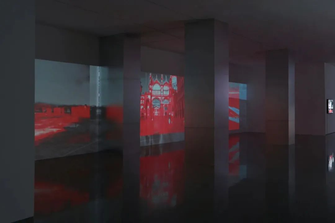 自然景观中的山河大地、建筑物墙体上大片的红色使人联想到血与肉,提醒人们场域从未中立的存在,空间承载着情绪和记忆。