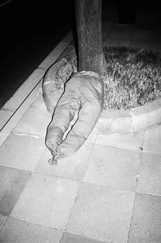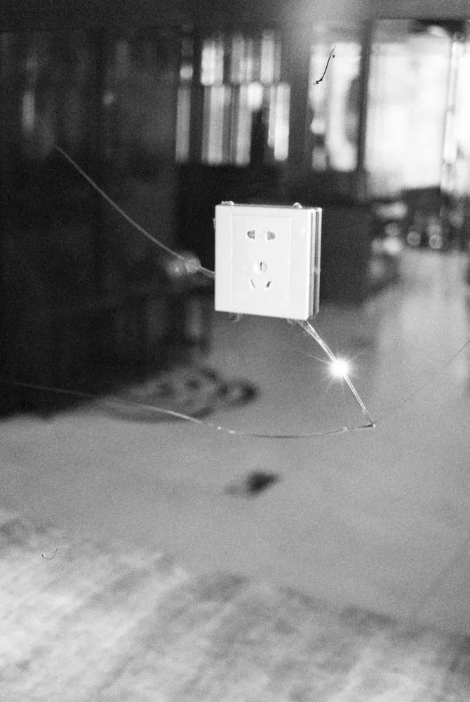 嵌在镜子里的插销,躺在树干旁的牛仔裤,莫名的拍摄对象和场景在看似单一的黑白灰度对比和似乎不经意的构图下使得作品更具故事性和神秘感。黎晓亮通过现代技术的运用,探索、挑战着现实与虚拟的边界,二者的融合将视觉推向新的可能。