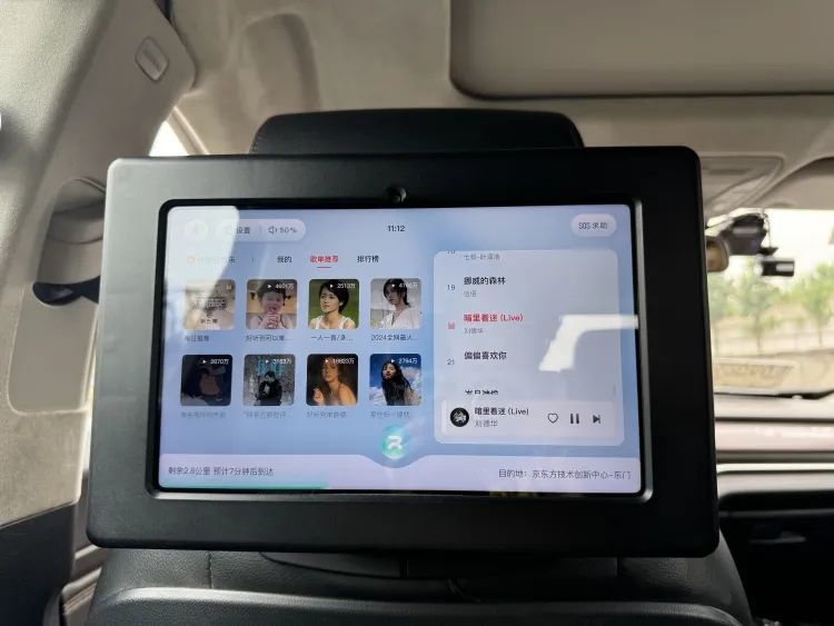 从乘坐体验来看,萝卜快跑后排的娱乐屏支持网易云音乐,有一些内置视频,但是只有萝卜快跑相关的视频,娱乐性一般。