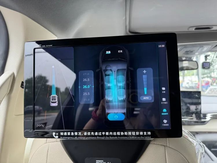 小马智行第六代车型后排屏幕 图源:品驾 摄
