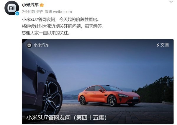 【智车派新闻】7月18日,小米汽车发布小米SU7答网友问第四十五集,其中,官方强调三层镀银玻璃不会影响手机信号。以下是CNMO整理的几个问题: