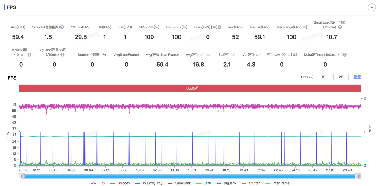 我们直接来看看 Redmi K70 至尊版的游戏表现。在 25 度室温环境下,在游戏助手中打开狂暴模式。在《原神》游戏中设置最高画质(864P),帧率设置为 60 帧,采用夜兰早柚双风共鸣。半小时须弥城跑图Redmi K70 至尊版的平均帧率为 59.4 帧,帧率表上几乎呈现一条直线,实际体验流畅得可以说是“毫无惊喜”。