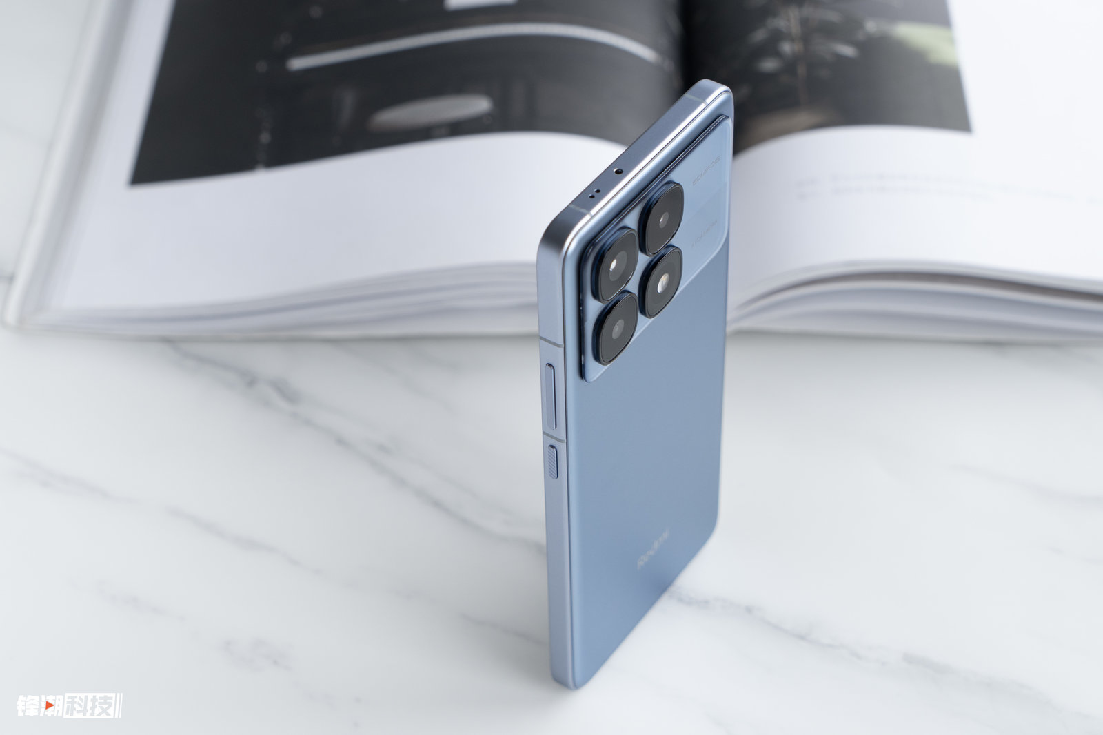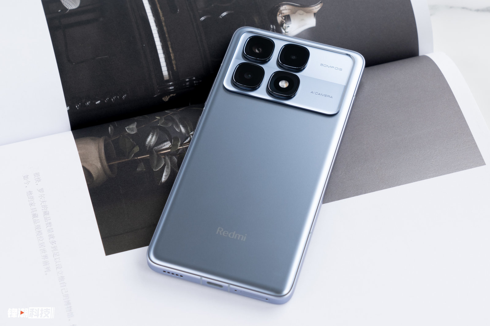 这次的镜头 DECO 并不像是 K70 和 K70 Pro 上的圆形,而是换成了像是宇宙飞船的舷窗一样的圆角矩形。机器的背板则采用了经过磨砂处理的玻璃,并采用了高强度铝合金磨砂边框,不用害怕沾染指纹,整机的质感十足。