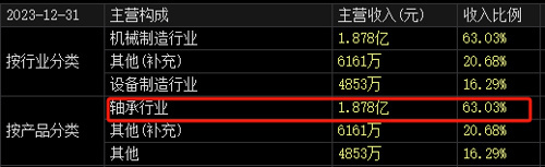 从2023年年报来看,轴承产品贡献了宝塔实业超六成的营业收入。