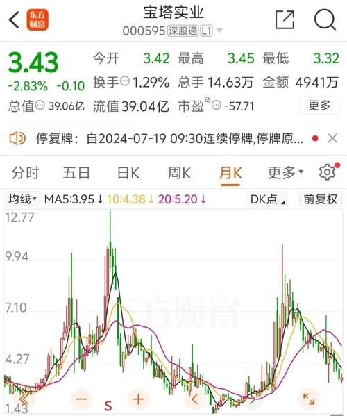 截至7月18日收盘,宝塔实业市值为39.06亿元。截至今年一季度末,公司有股东7.19万户。