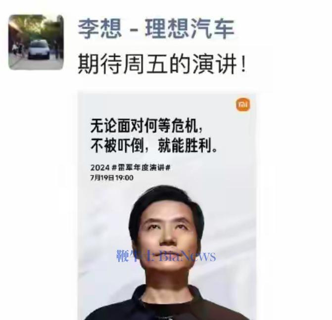 理想汽车创始人李想昨日在朋友圈发文称“期待周五的演讲”。