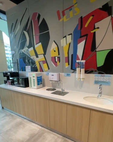 顾客服务区有饮水、洗手、充电、加热、加冰块等设备。