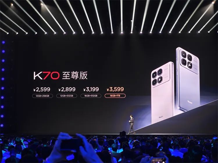 Redmi K70至尊版,雷军说这是王腾升任Redmi品牌总经理后的首款作品,因此为了支持王腾,最后定在了2599元的起售价格,于是全场响起了仅次于小米SU7 Ultra的欢呼与掌声。