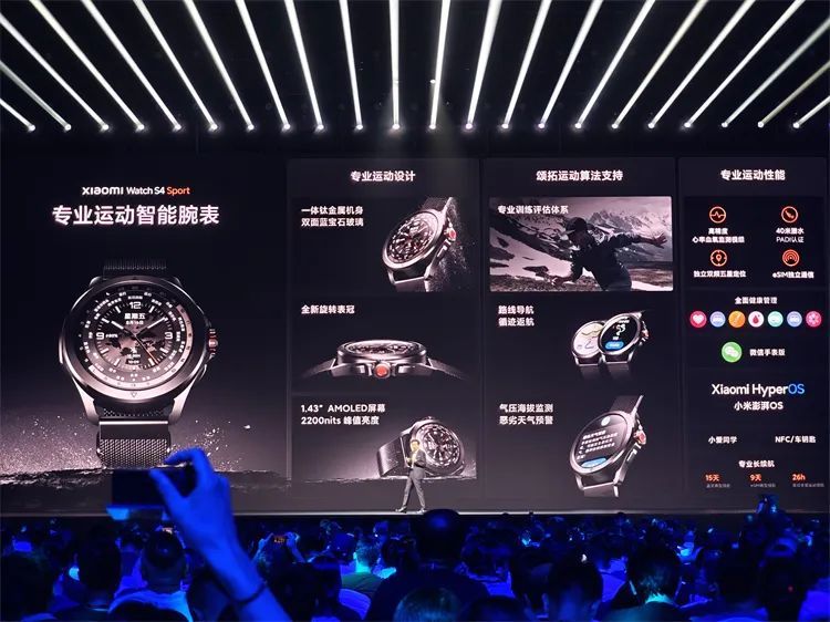 小米Watch S4 Sport,一体钛金属机身、旋转表冠、前后蓝宝石玻璃,峰值亮度达 2200nits,与全球知名户外运动品牌颂拓合作打造专业运动算法,并且可实现高精度心率血氧监测、双频五星定位、离线地图、独立 eSIM 通信,最长续航达 15 天,售价1999元起。