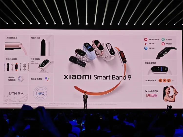 小米手环9,采用金属机身,配备高精度监测模组,提升心率与睡眠监测准确率,可实现21天续航,支持NFC车钥匙,并推出陶瓷特别版,售价249元起。