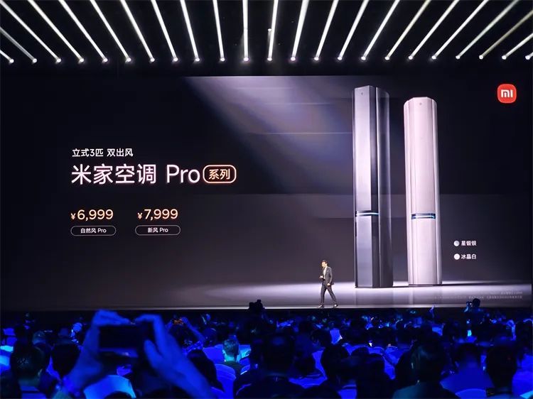 米家空调新风Pro,双出风设计,可实现 160°超广角送风,超一级能效 APF高达 5.01,配置双缸压缩机和双排冷凝器,全系搭载米家灵云智控引擎,接入小米澎湃智联,可与加湿器、空净等设备联动,售价7999元,另有自然风Pro售价6999元。