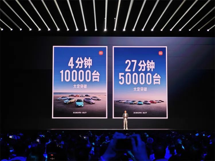 4分钟大定突破10000台,27分钟大定突破50000台。雷军关于造车的所有勇气在这一刻终于得到了回报。