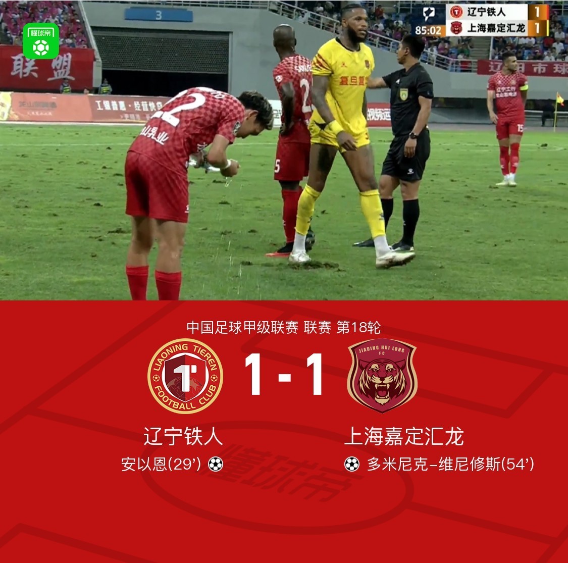 北京时间7月20日19:00,中国足球甲级联赛第18轮,辽宁铁人主场迎战上海嘉定汇龙。上半场比赛中,安以恩在邦本宜裕的助攻下成功破门;下半场多米尼克为客队扳平比分。最终,双方以1-1的比分握手言和。
