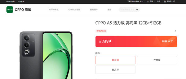 【CNMO科技消息】7月22日,CNMO注意到,据OPPO官方商城消息,OPPO A3活力版正式发布,目前提供12GB+256GB和12GB+512GB两种版本,售价分别为1799元和2399元。