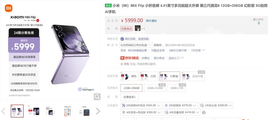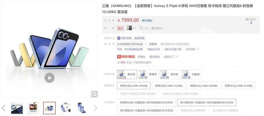 首款骁龙8 Gen 3移动平台小折叠:三星Galaxy Z Flip6 | 7999元