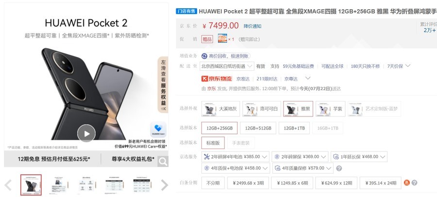 旗舰级四摄小折叠:华为Pocket 2 | 7499元