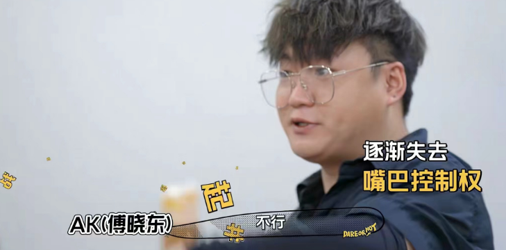 傅晓东参与的第一个吃辣椒挑战,他和姜潮进入了最终轮,虽然两人都被辣得不行。