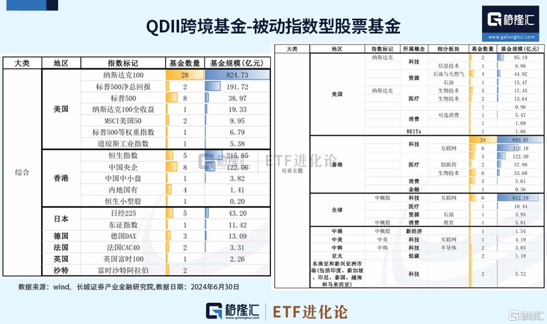QDII跨境被动指数基金主要分为综合和行业主题两类基金。