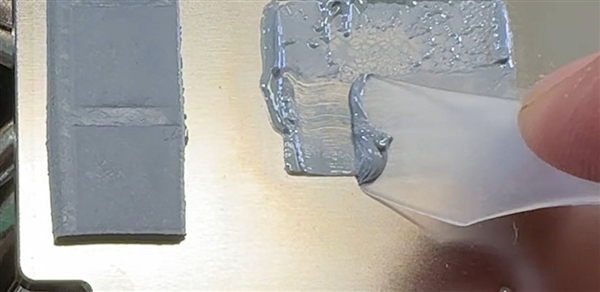 最终发现不少品牌的原装硅脂稳定性极差,短时间内就会出现滴液现象,状态也不如常见的正规硅脂粘稠。