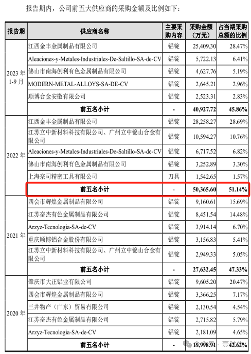 不仅如此,在募集说明书中,嵘泰股份披露了报告期内向前五大供应商的采购金额及比例,报告期各期,嵘泰股份向前五大供应商的采购金额合计分别为19,998.91万元、27,632.45万元、50,365.60万元、40,927.72万元。