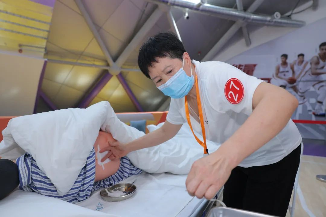 本次赛事共分为“压疮换药”和“照顾有睡眠障碍的老年人入睡”两个赛道,选手采取现场抽签的方式决定出场顺序。赛场上,选手们身着统一服装,精神饱满,操作严谨,动作规范流畅,展现了良好的职业素养和过硬的护理技能。