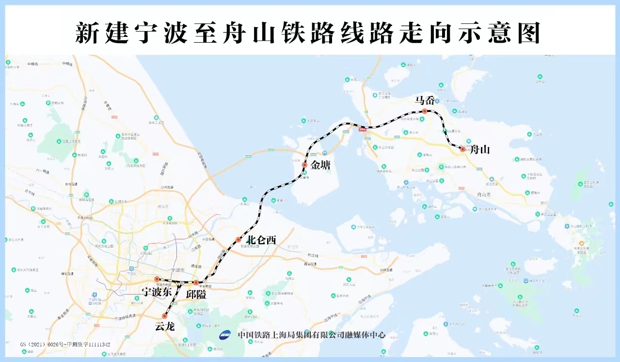 全长76.4公里的甬舟铁路西起宁波东站,经宁波市鄞州区、北仑区,通过新建金塘海底隧道至舟山市金塘岛、新建跨海大桥,至册子岛及舟山本岛,终至定海区白泉镇,设有宁波东、云龙、邱隘、北仑西、金塘、马岙、舟山7个车站,设计时速250公里,是构建浙江省“1小时交通圈”,形成大陆与舟山岛间的便捷客运通道。