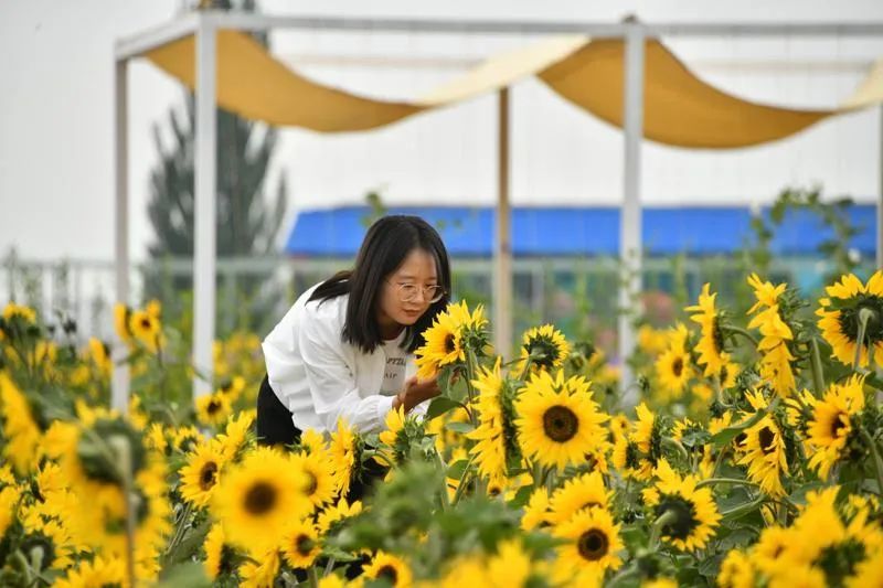 夏日,沿124县道到秦东生态农场,只见大片葵花、马鞭草组成的花海在微风中泛起波浪,一排排采摘大棚伴着光鲜夺目的墙绘整齐排列,一个个农家小院在农田果园旁就势而建、掩映其中。