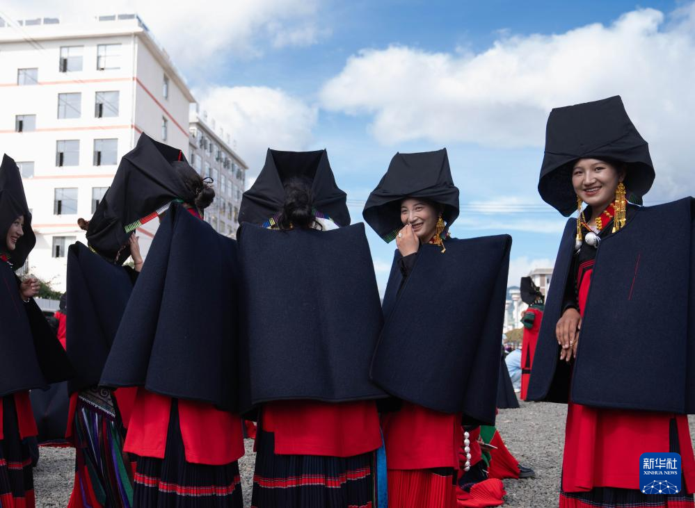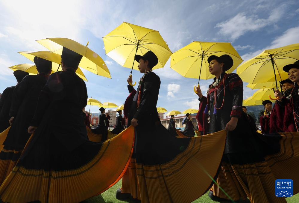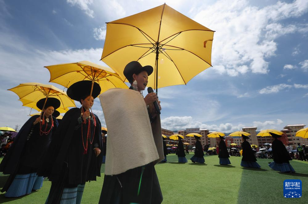 7月24日,一队彝族妇女参加朵洛荷表演。