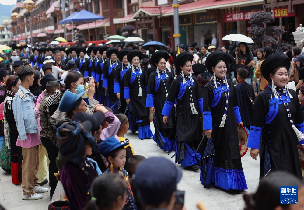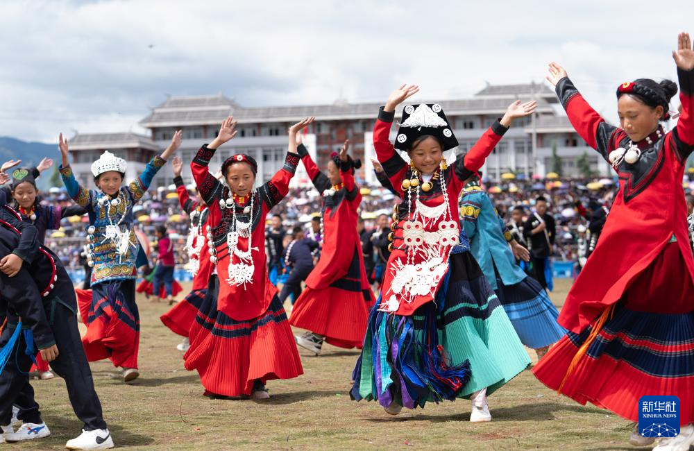 7月24日,一队彝族少女参加朵洛荷表演及传统选美。
