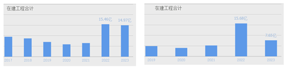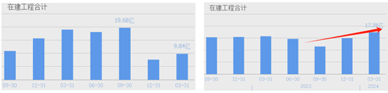 2023年末,随着在建工程逐渐完工结转成固定资产,华润微的在建工程规模已明显缩减。而反观士兰微,继续逆流而上。